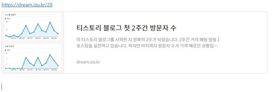 그리고 새 에디터에서 글을 공유할 때 링크를 입력하고 엔터를 치면 공유하는 글의 제목, 썸네일 및 요약문이 자동으로 표시되므로 사용상 편리한 측면도 있습니다.